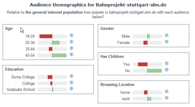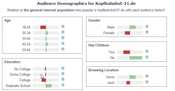 Nun kann man zweifeln, ob die Alexa Statistik im Detail wirklich aussagekräftig ist. Auf alle Fälle kann man sagen, dass die S21 und K21 Sites keine wesentliche Rolle bei der Information der Bürger spielen. Das liegt hauptsächlich am mangelnden Interesse der Bürger sich gründlich zu informieren aber auch an dem mehr als dürftigen Inhalten der beides Websites.