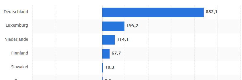 Target 2 Salden – Plus Quelle: StatistaEs gibt aber auch Staaten, die massive Saldo 2 Schulden haben (lustige Nehmer). Spanien und Italien haben unser Geschenk von 840 Milliarden offenbar dankbar angenommen. Die deutschen Bürger sind mit dieser Praxis offensichtlich einverstanden und verzichten freiwillig auf höhere Löhne und bessere staatliche Leistungen.