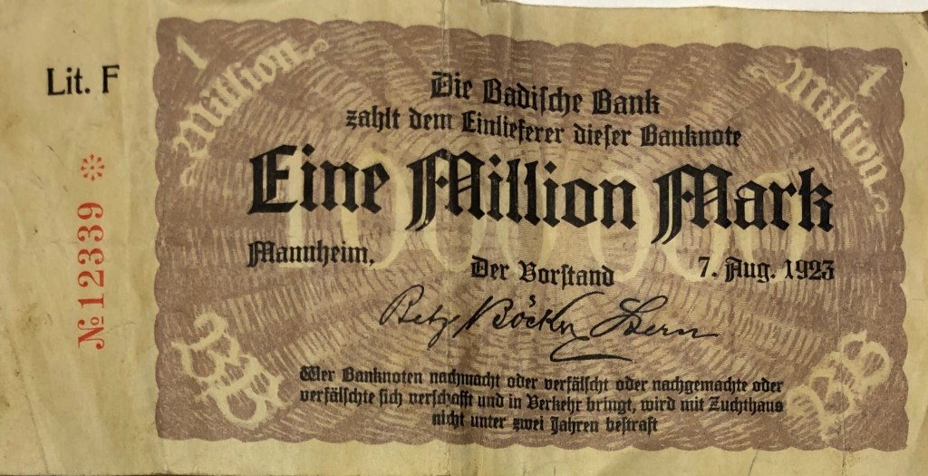 Bei den Geldscheinen der Badischen Bank von 1923 konnte man die Krise leicht erkennen. Da die Geld Druckmaschinen nicht mehr nachkamen blieb die Rückseite unbedruckt!