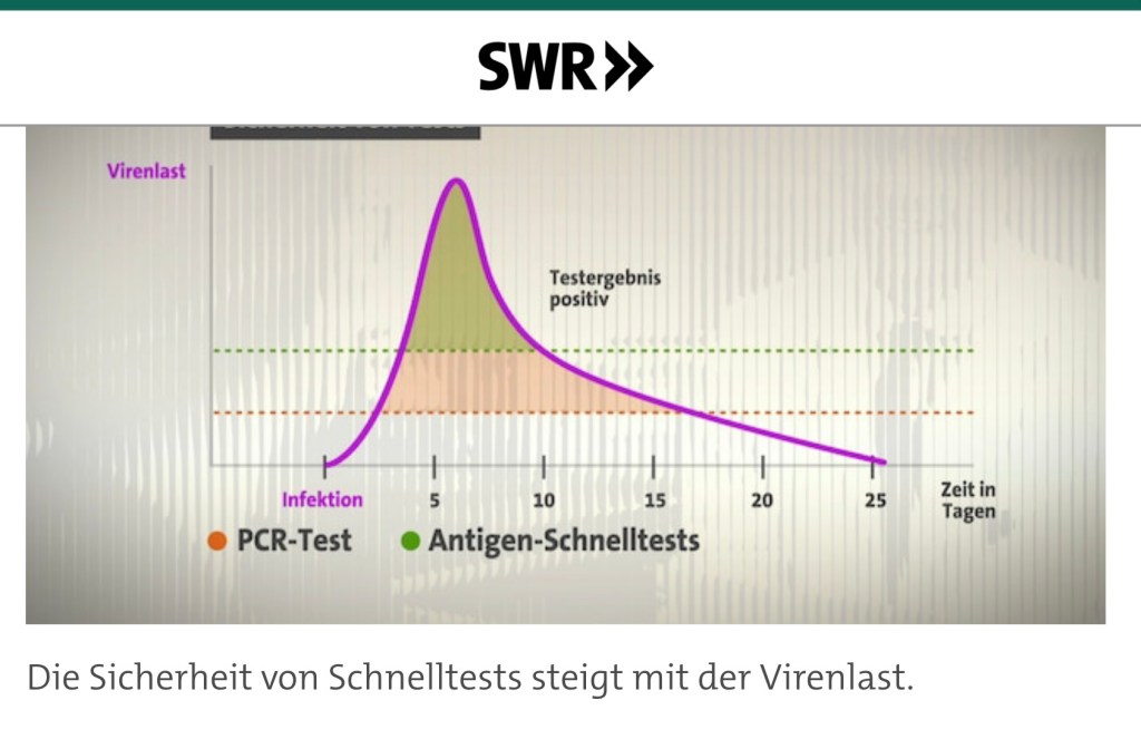In dem Artikel Corona Info gibt es eine Liste zuverlässiger Schnelltests. Wichtig ist, dass nach der Ansteckung mit PCR Test die Infektion erst nach 2 Tagen und mit Schnelltest nach etwa 3 Tagen erkannt werden kann. Die Werte für Intensität der Virenlast und Zeiten für den Infektionsbeginn können damit variieren.