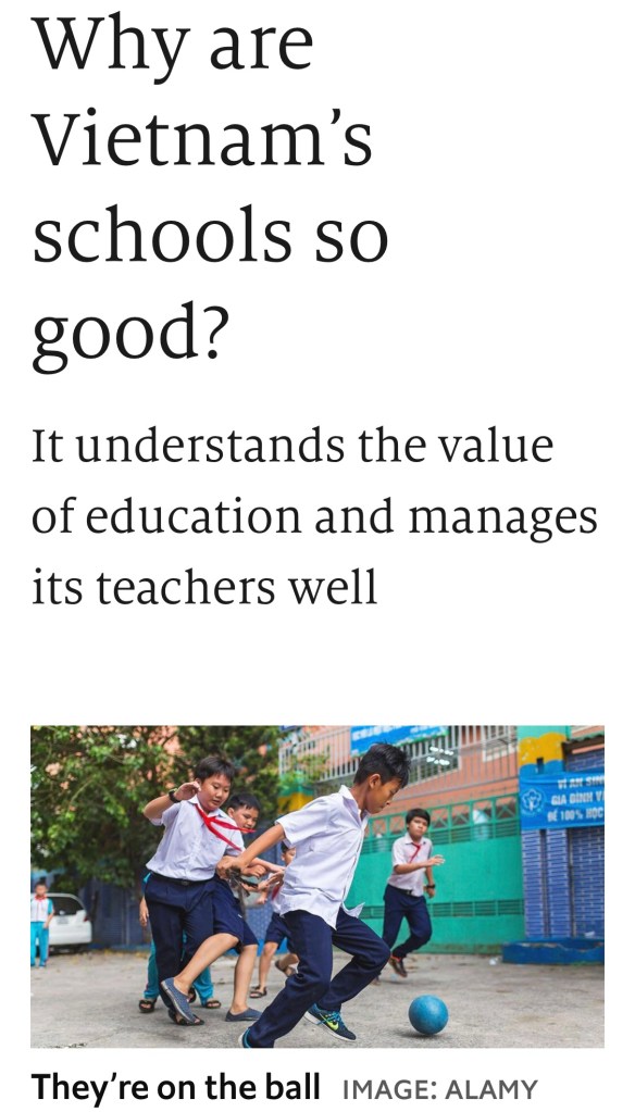 Im Gegensatz zu unseren Wendehalspolitikern weiß man in Vietnam daß langfristig gesellschaftlicher Fortschritt nur durch Bildung der Lehrer und Schüler sowie deren Eltern und ein leistungsorientiertes Schulsystem erreicht werden kann.
