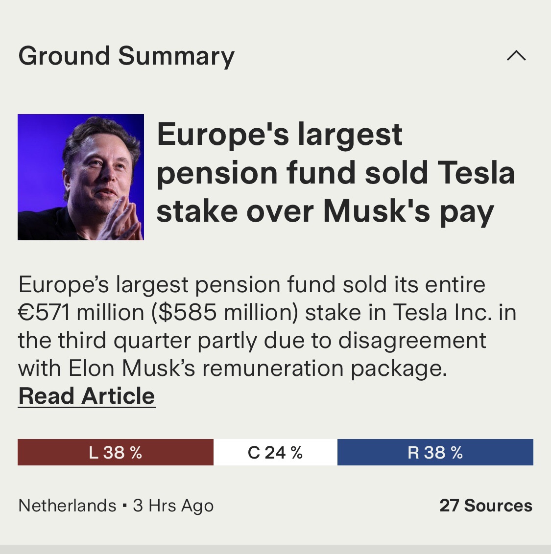 Ground News gibt auch eine Übersicht der Nachrichtendienste (Channels) an, bei denen die Nachricht veröffentlicht und eventuell kommentiert wurde. Die Quellen werden dann sortiert nach politischer Position: LINKS NEUTRAL RECHTS.