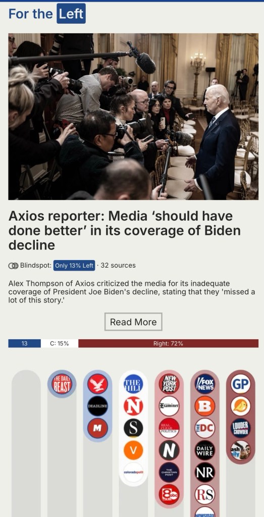 Mit Ground News kann man sich ein Profil einstellen und auch dynamisch ändern. Ground News zeigt die Quellen an. Überraschend ist auf wie vielen Kanälen einzelne originäre Nachrichten übertragen werden. Ground News bewertet die Kanäle mit LINKS MITTE RECHTS – ein Versuch. Man sieht aber wie Kanäle ihre Zielgruppe zu erreichen versuchen.