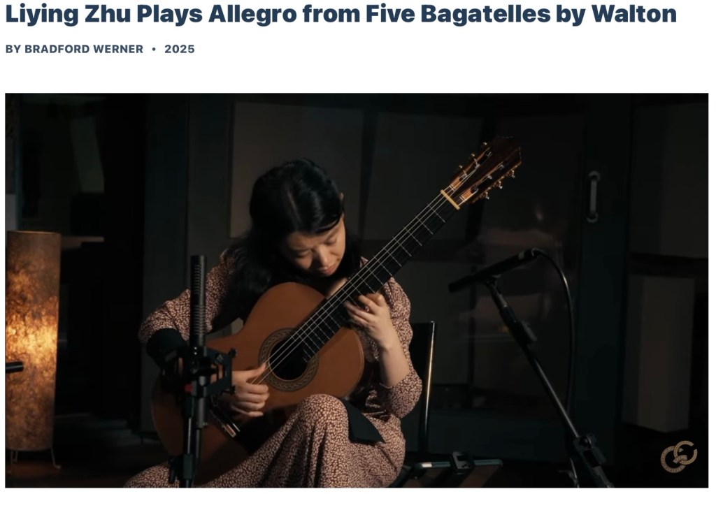 Classical guitar at its best – Liying Zhu Plays Allegro from Five Bagatelles by Walton Youtube recording